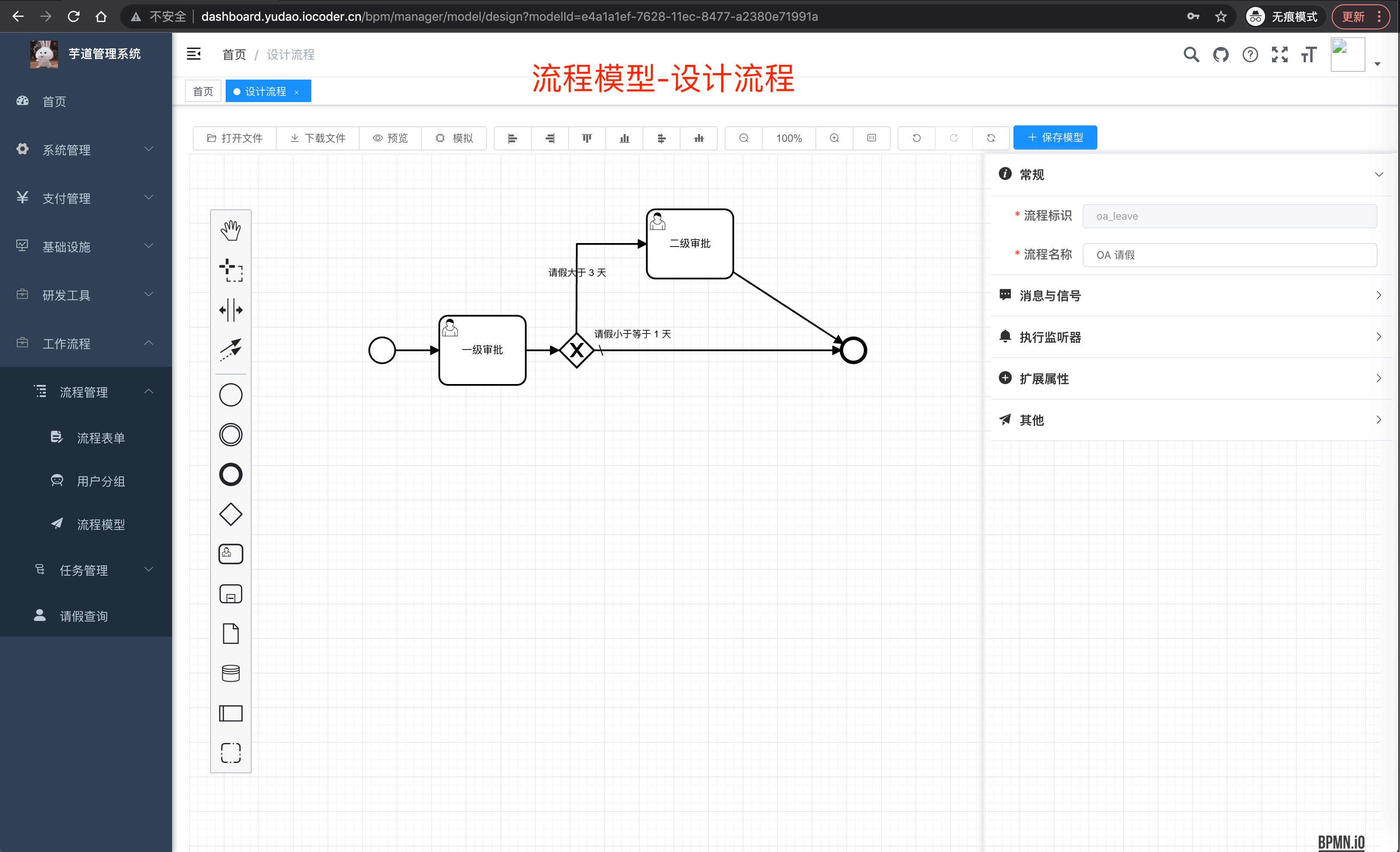 流程模型 流程模型-列表 流程模型-设计 流程模型-定义