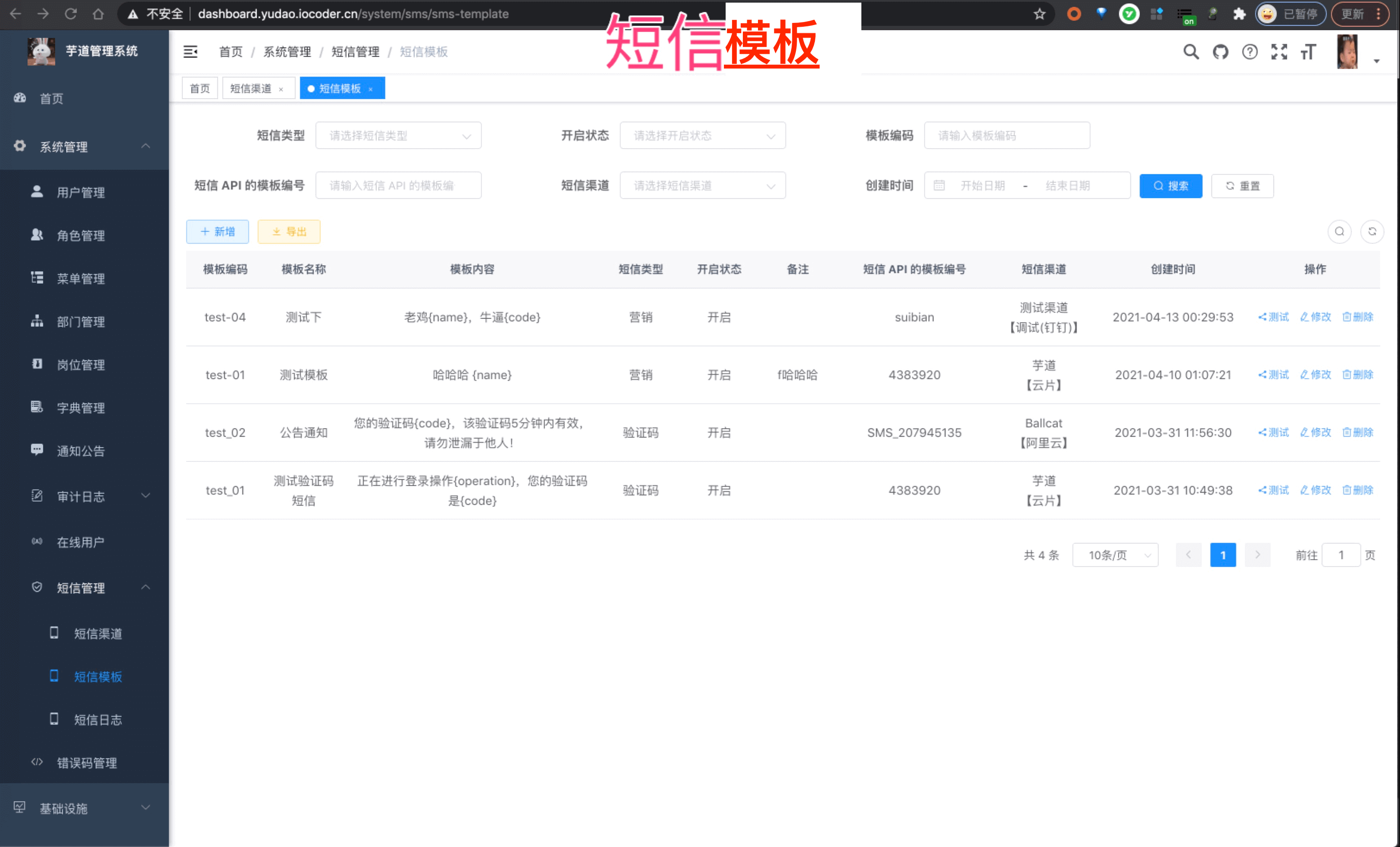 短信 短信渠道 短信模板 短信日志